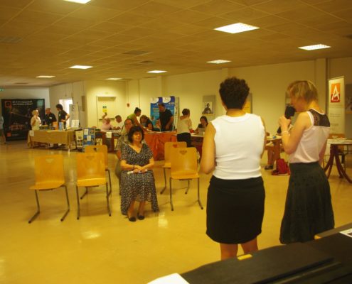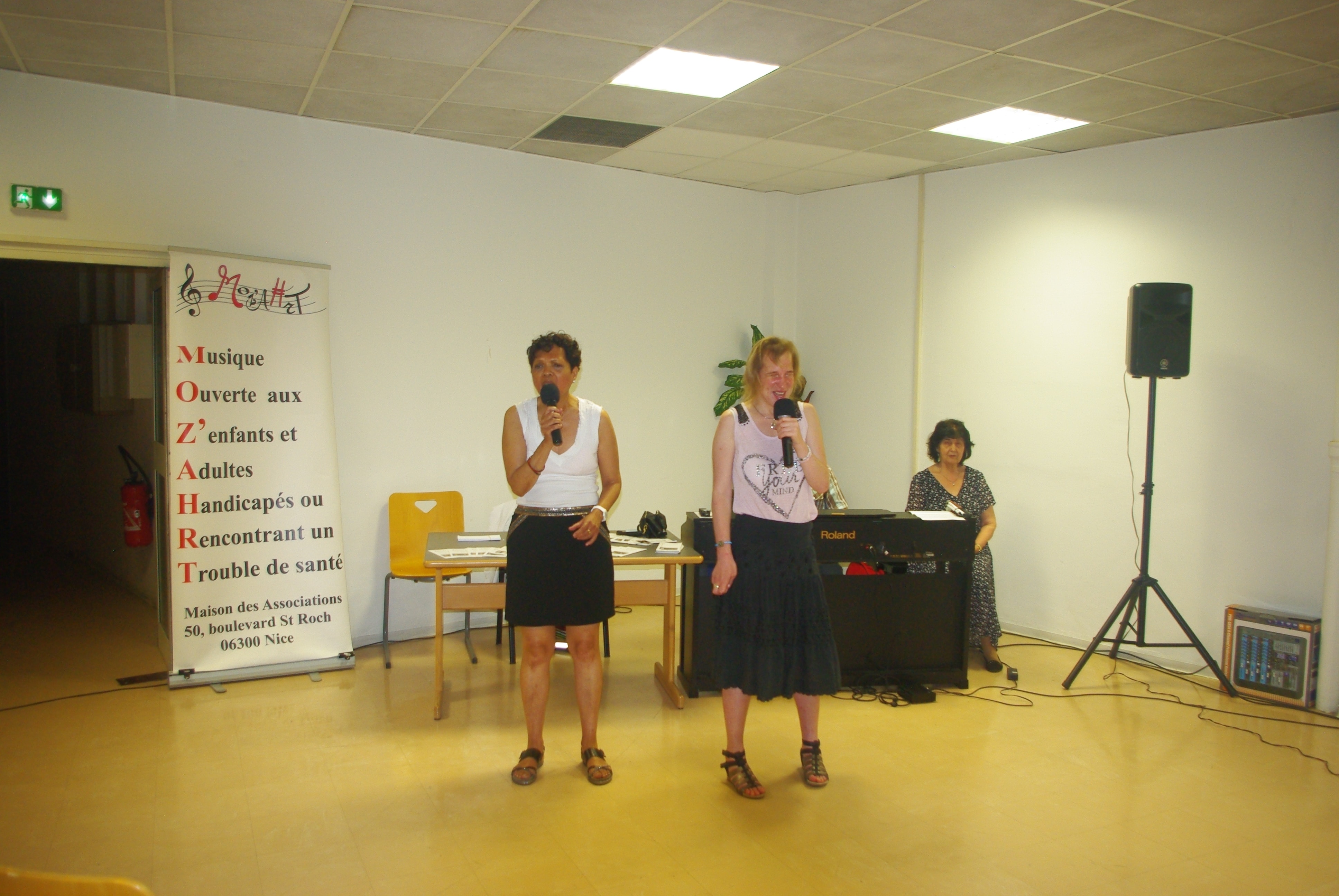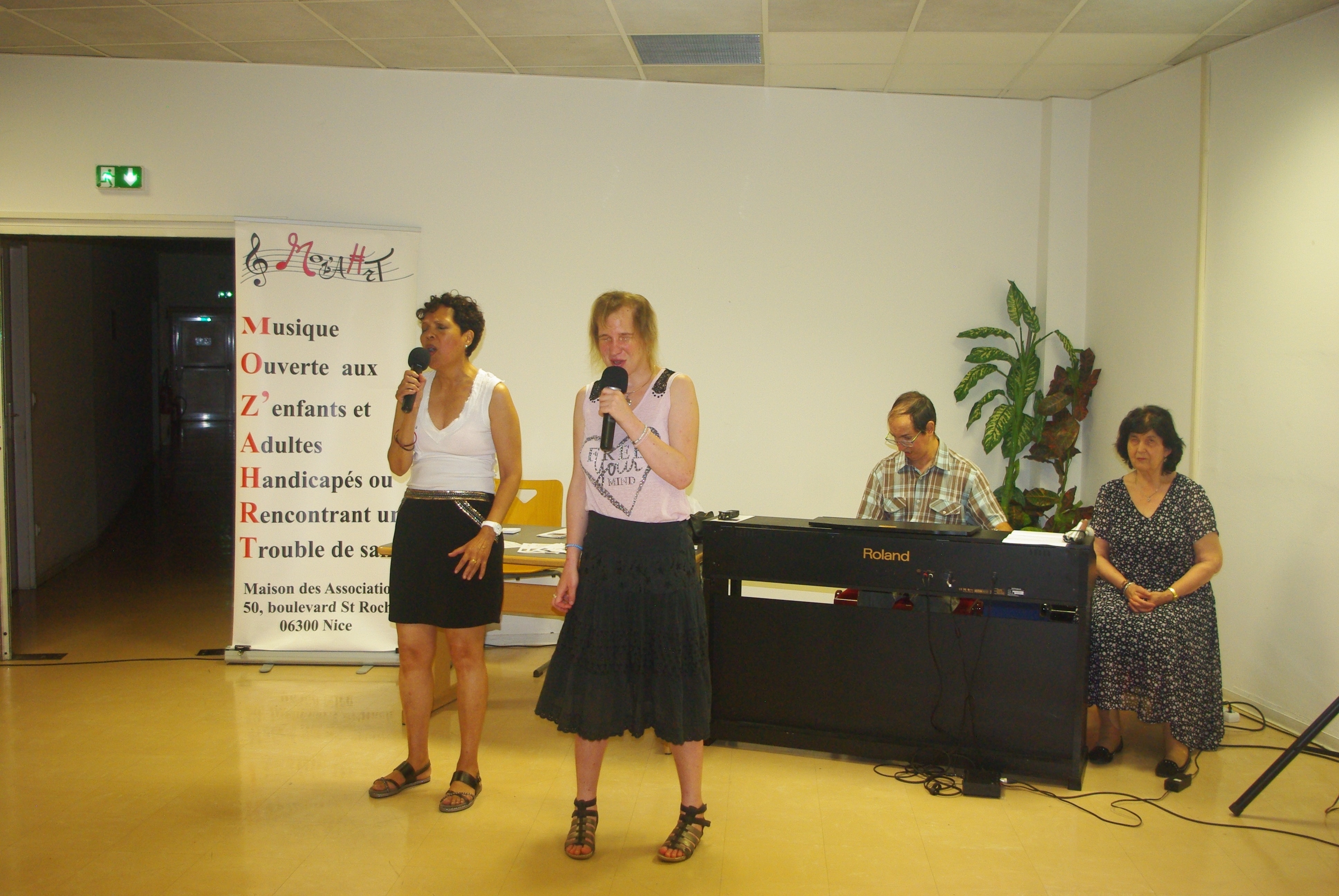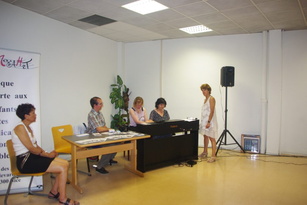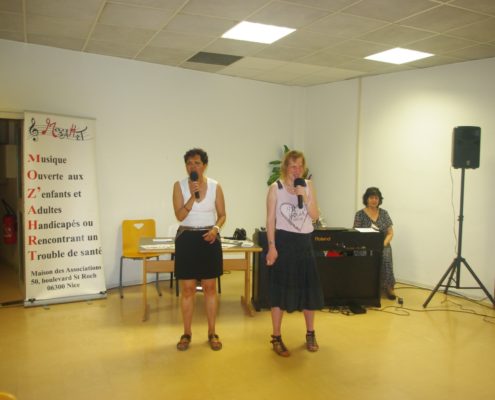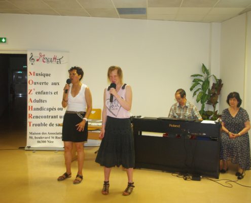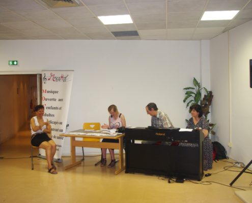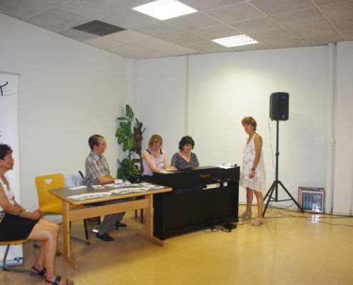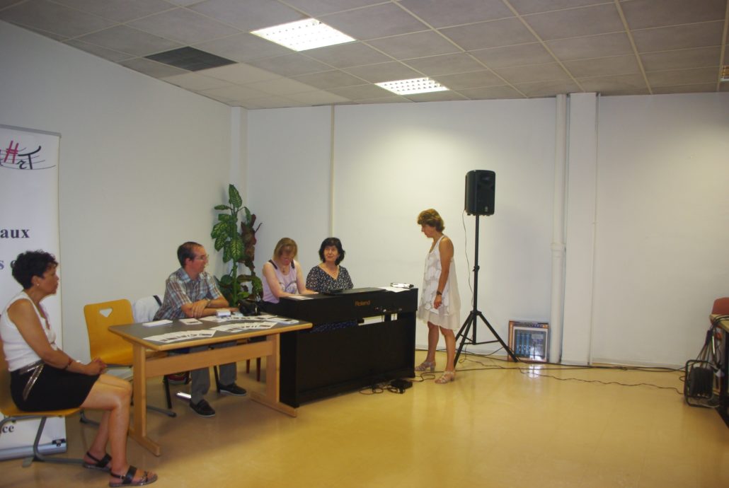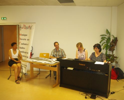 Concert de la fête de la musique dans les locaux de Orange avec d’autres associations. Au piano Jacqueline et Olivier, au chant Michelle et Julie, photos et sono Régis aidé de Virginie.
